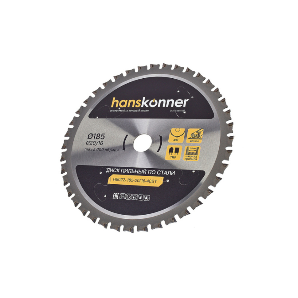 Характеристики Диск пильный по стали 185x20/16мм, 40Т Hanskonner (H9022-185-20/16-40ST)