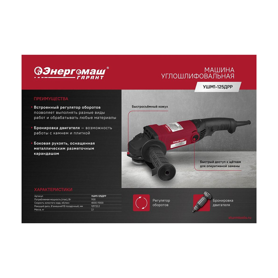 Преимущества Энергомаш Гарант УШМ1-125ДРР: