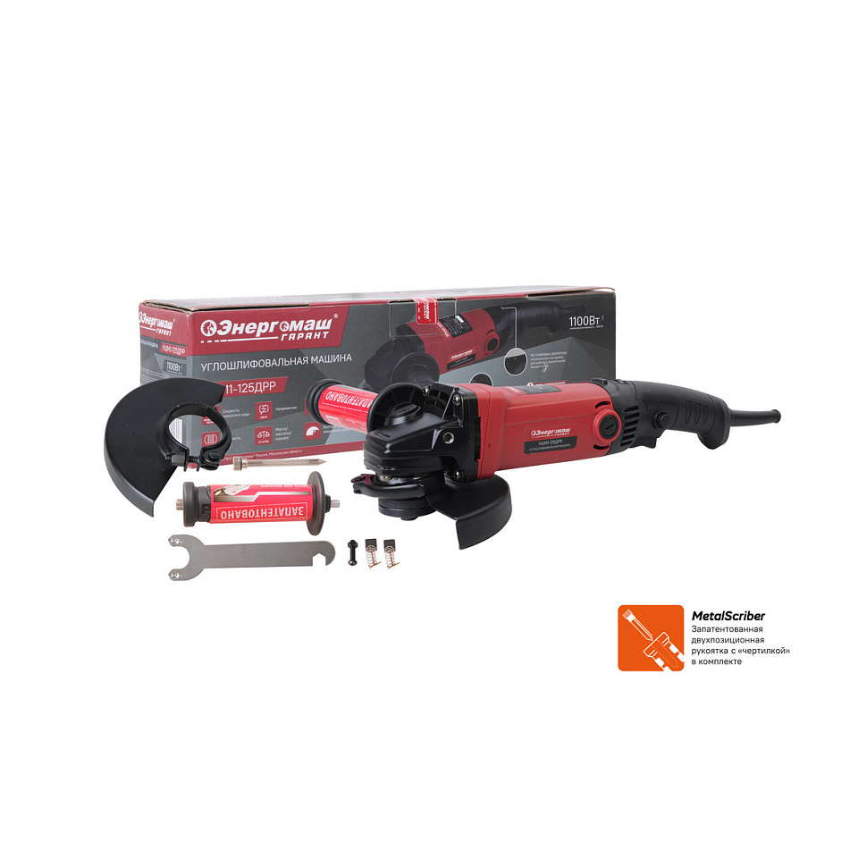 УШМ (болгарка) Энергомаш Гарант УШМ1-125ДРР. Быстросъемный защитный кожух. Боковая рукоятка. Твердосплавный разметочный карандаш. Фланцевый ключ. Дополнительные угольные щетки (комплект, 2шт). Болт с гайкой. Инструкция по эксплуатации. Инструкция по безопасности. Коробка. |