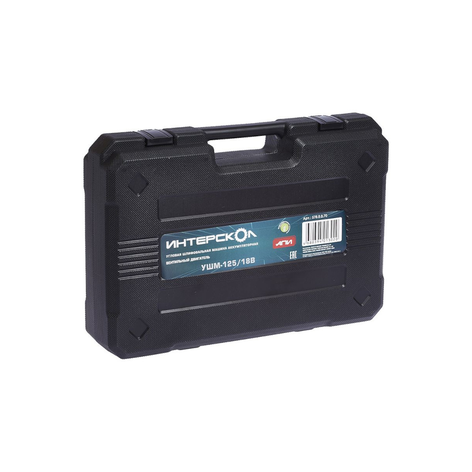 Характеристики УШМ аккумуляторная Интерскол УШМ-125/18В Li-ion АПИ (18В, бесщ, 125мм, без АКБ/ЗУ, кейс) 578.0.0.70