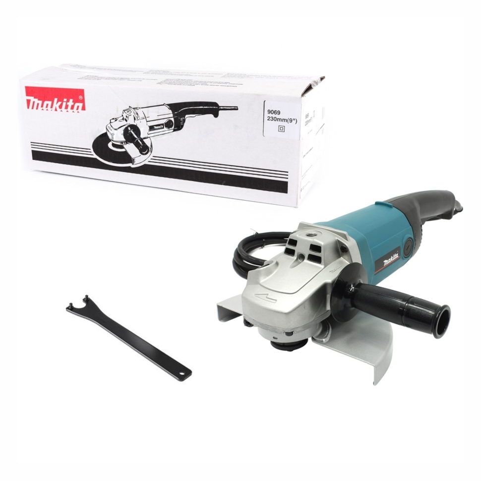 УШМ (болгарка) Makita 9069. Кожух защитный. Боковая рукоятка. Ключ для болгарки. Коробка. |