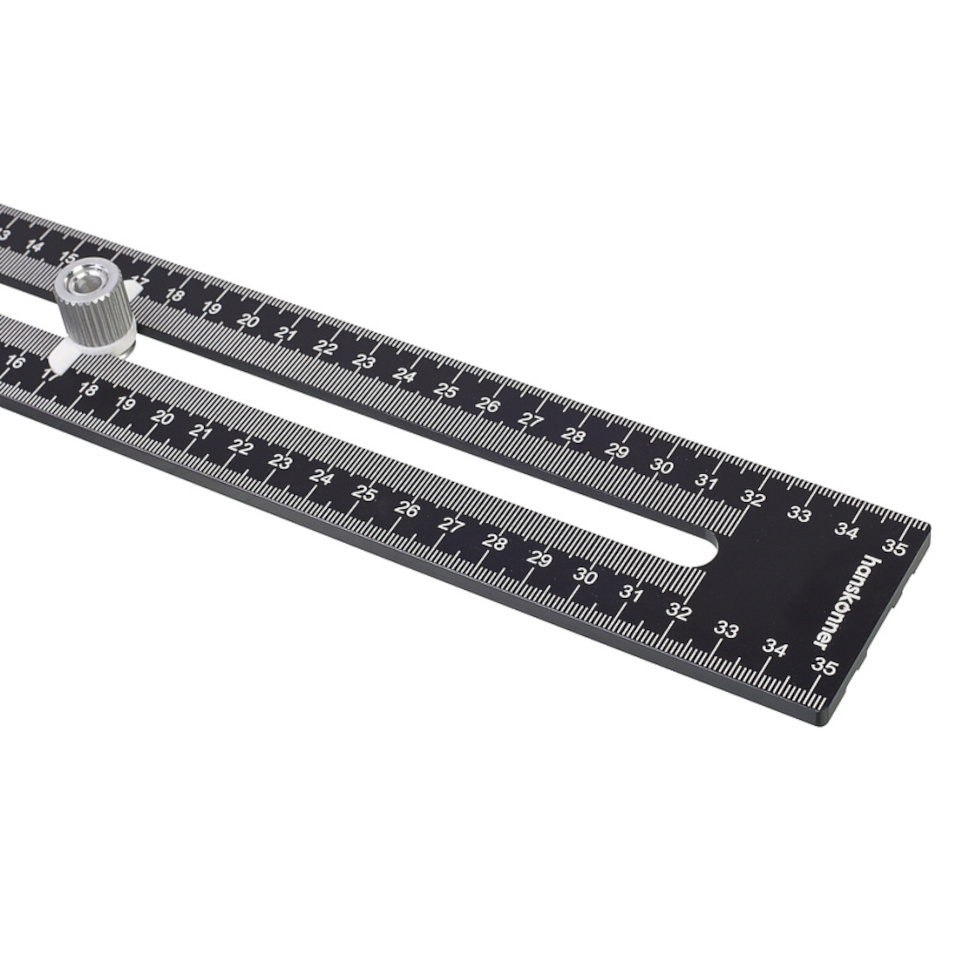 Угольник Хансконнер длиной 350 мм со встроенным уровнем и транспортиром демонстрирует универсальность благодаря возможности точной фиксации в 12 положениях: 0°/15°/30°/45°/60°/75°/90°/105°/120°/135°/150°/165°.