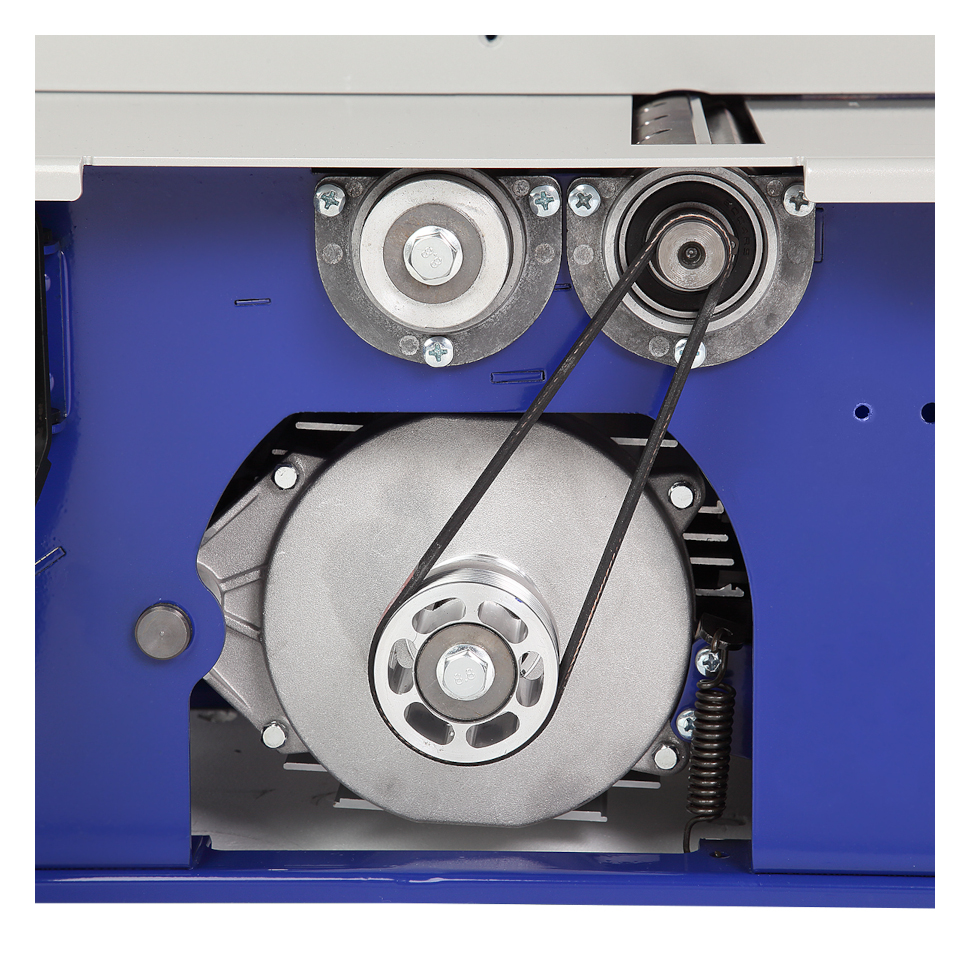 - Использует два независимых вала - для пиления и строгания, что исключает одновременную работу режущих органов и повышает безопасность. Смена операции происходит перекидыванием ремня с автоматическим натяжением.