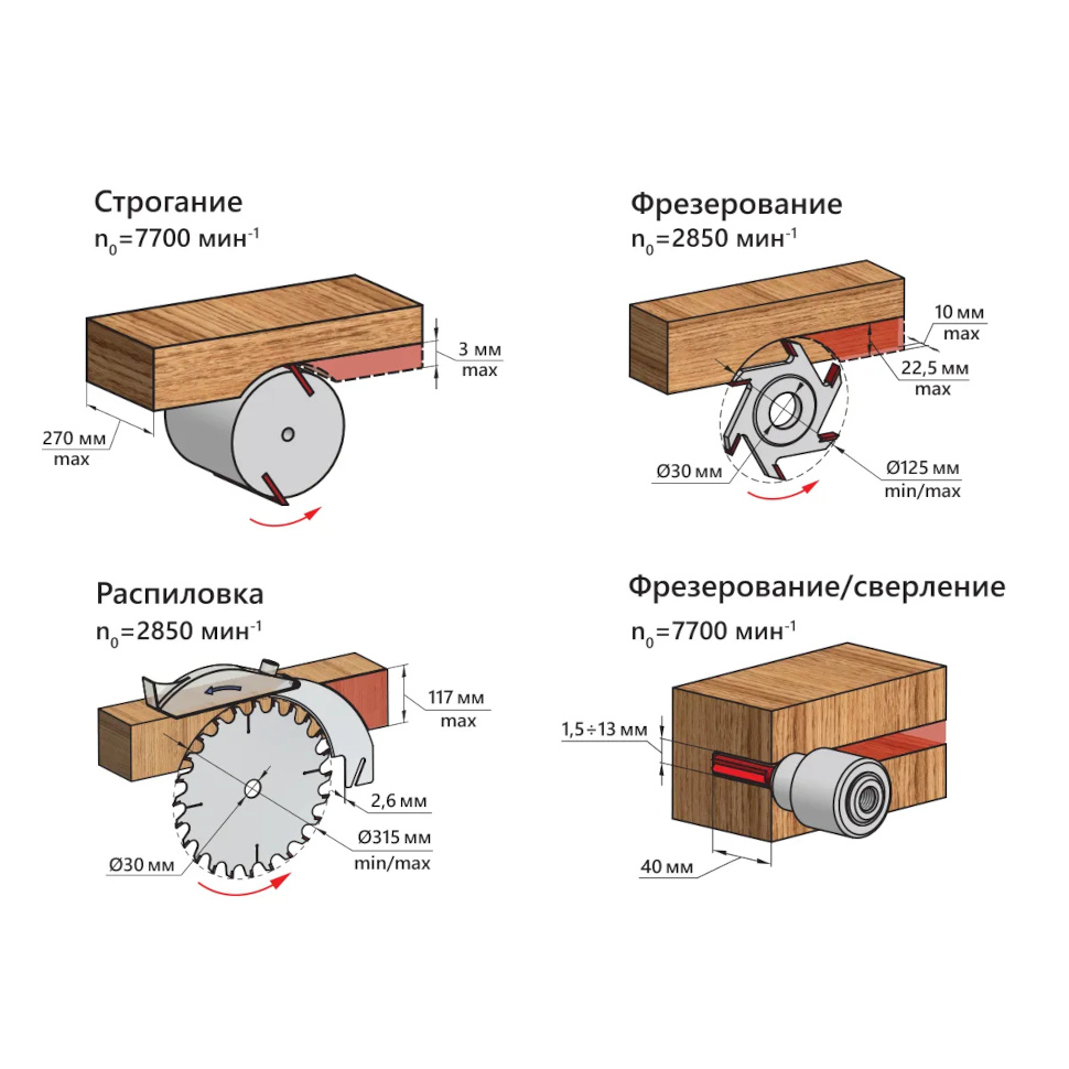 Распиловка, Сверление, Строгание, Фрезерование, Фугование |