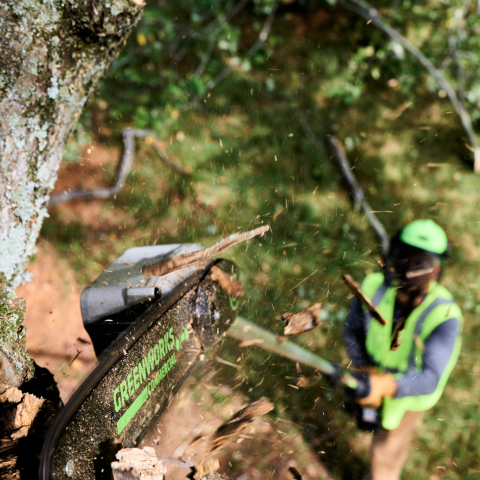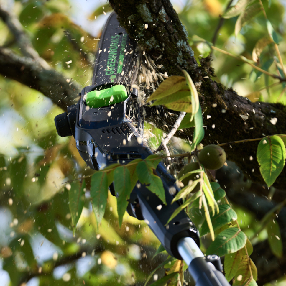 Профессиональный аккумуляторный высоторез Гринворкс 1402207 из линейки Commercial имеет высокую производительность реза: