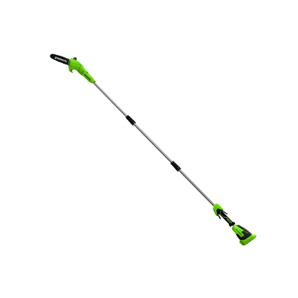 2. Безопасная работа на высоте - телескопическая штанга регулируется от 224 см до 288 см, позволяя безопасно обрезать высокие ветки, стоя на земле. Нож кустореза поворачивается относительно штанги для точного позиционирования.