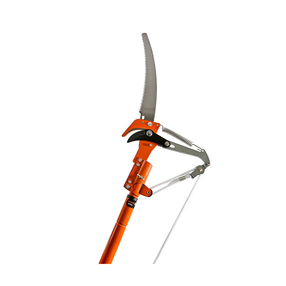 - Телескопическая металлическая штанга регулируется до 2.4 м, обеспечивая доступ к высоким ветвям декоративных и плодовых деревьев.