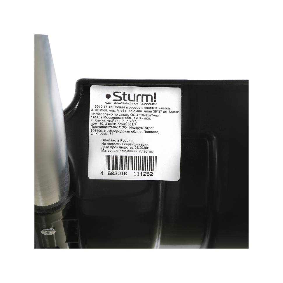 Лопата снеговая 38х37см, морозостойкий пластик, алюминевый черенок STURM (3010-15-15) |