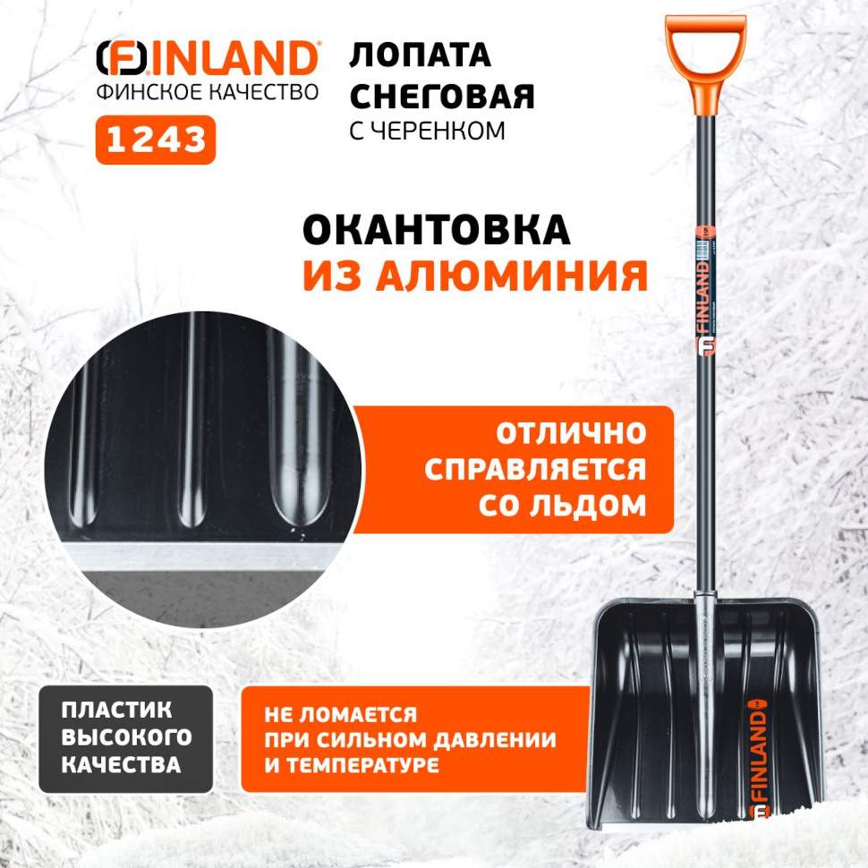 Лопат для уборки снега Finland 1243 для дополнительной прочности и защиты от износа имеет рабочую кромку, усиленную алюминиевой планкой.