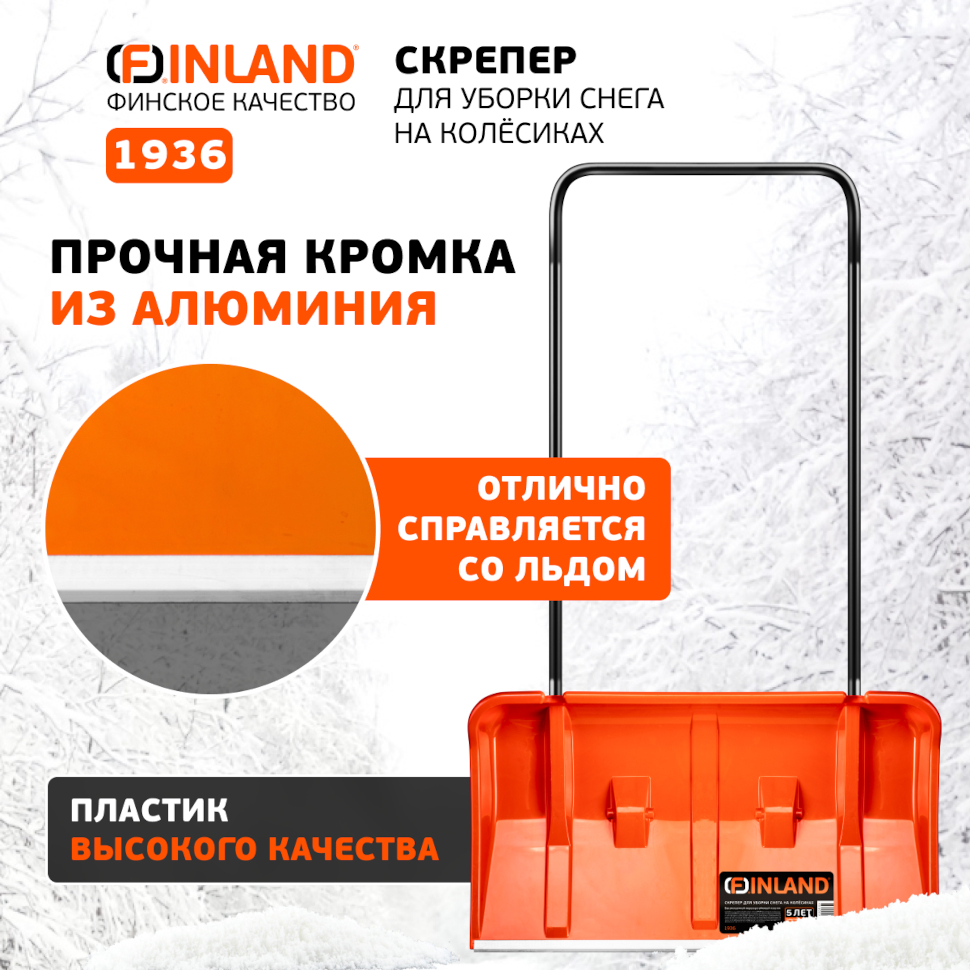 Скрепер для уборки снега на колёсиках Finland (1936) позволяет минимизировать физическую нагрузку на пользователя, позволяя работать в вертикальном положении и регулировать усилие приложения к снежному покрову.