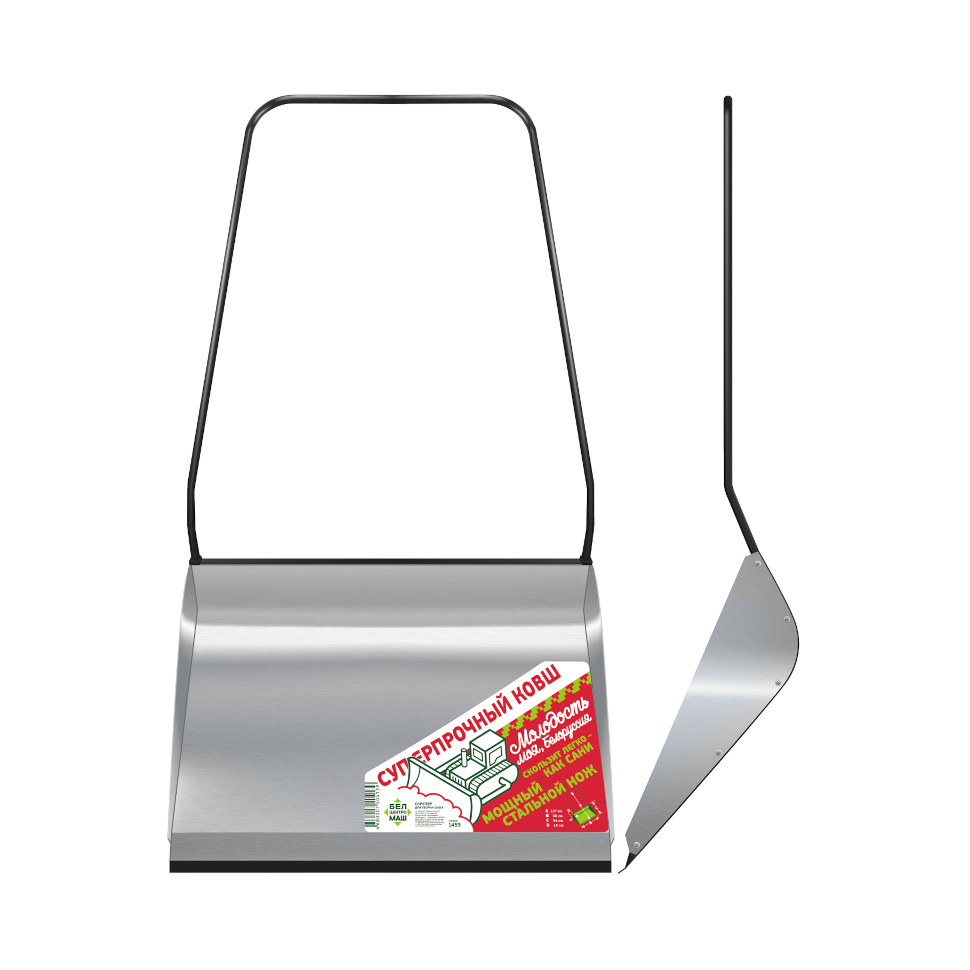 Характеристики Скрепер для уборки снега 800x560x1510мм стальной, П-образная металлическая ручка БЦМ (1459)